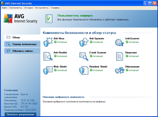 AVG Internet Security - комплекс программ для защиты ПК от опасных объектов и сетевых угроз. Программа блокирует вирусы, трояны, червей, шпионске программы, а фаервол защитит от возможных сетевых атак.