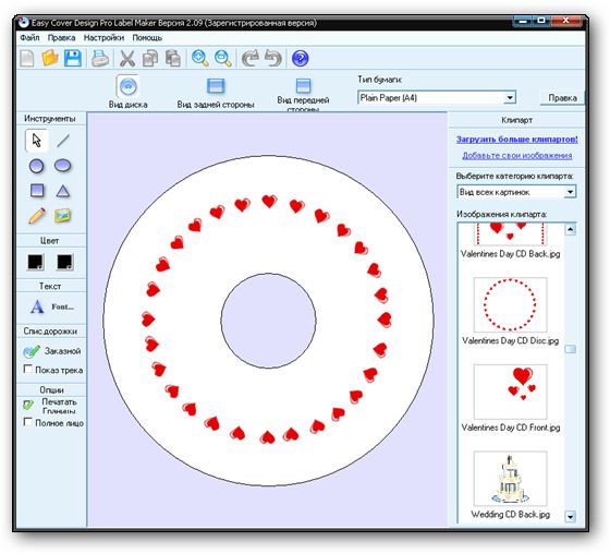 Easy Cover Design Pro - великолепное решение для печати этикеток и наклеек к CD и DVD дискам. Программа позволяет вам полностью разработать и спроектировать "лицо" вашего компакт диска предлагая свыше 1000 картинок изображений или позволяет использовать собственные изображения. Программа имеет интуитивно понятный интерфейс и позволяет делать уникальные и эксклюзивные этикетки для ваших CD и DVD дисков.