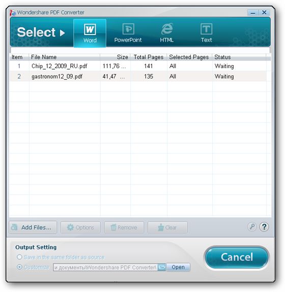 Wondershare PDF Converter - это мощная программа, которая поможет вам конвертировать PDF файлы в Word, PowerPoint презентации, HTML-страницы или текстовые файлы. Программа поддерживает режимы пакетного и частичного преобразования, имеет приятный и дружественный интерфейс.