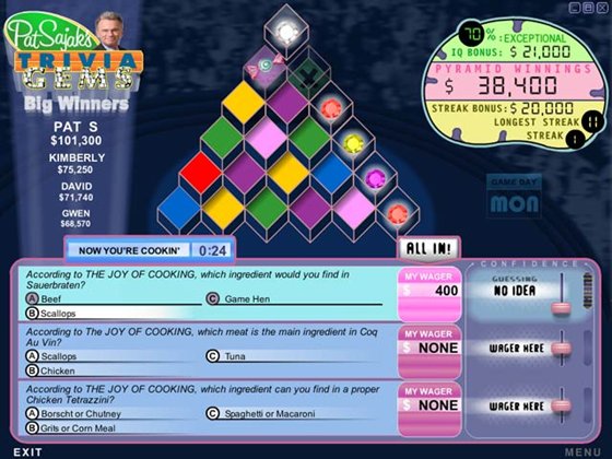 Примите участие в увлекательной классической американской шоу-игре! Отвечайте на вопросы из самых разных областей и заберитесь на самую вершину игровой пирамиды. Играйте на время в одиночной игре или зовите на помощь друзей и членов семьи в раунде Trivia Players. Это один из чемпионатов, где ставки очень высоки, а веселье безгранично! Делайте свои ставки на Pat Sajak`s Trivia Gems и пусть Вам повезет!