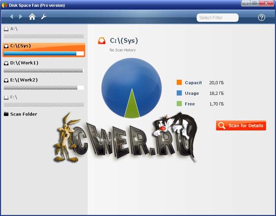 Скачать программу Disk Space Fan Pro 2.2.1.798 (1,99 МБ):