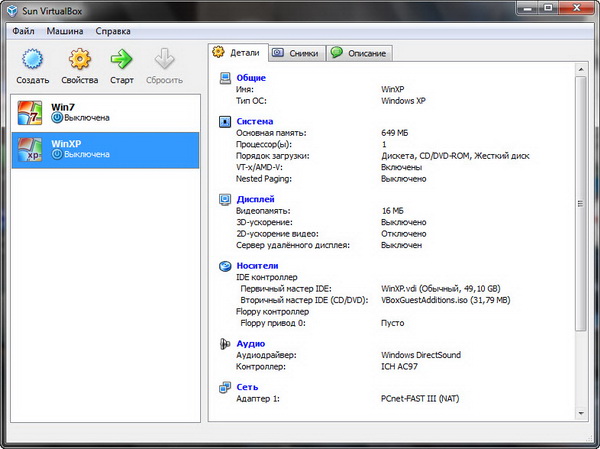 VirtualBox - программа для создания в памяти ПК виртуальных компьютеров. Каждый виртуальный компьютер может содержать произвольный набор виртуальных устройств и отдельную операционную систему. Область применения виртуальных компьютеров очень широка - от выполнения функций по тестированию ПО до создания целых сетей, которые легко масштабировать, распределять нагрузку и защищать. Программа распространяется бесплатно, с открытым исходным кодом.
