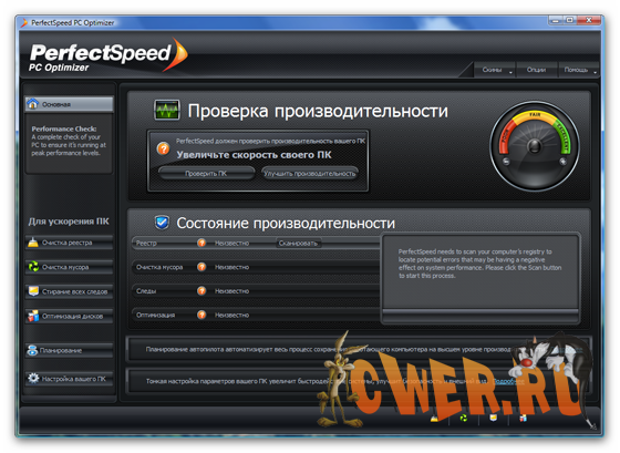 PerfectSpeed - первый продукт, который объединяет множество инструментальных средств для увеличения производительности вашего компьютера. Содержит в себе полный набор программ для обслуживания ПК — удостоверенная Microsoft дисковая дефрагментация и инструмент оптимизации, для безопасной очистки системного реестра, удаление дубликатов файлов, деинсталляция файлов по методу Shredder и серьёзная защита Ваших файлов - все-в-одном! Все процессы могут быть автоматизированы на высоком уровне.