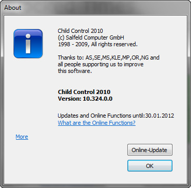 - New! Internet Remote Control: Starting with Child Control 2009 you can modify the most important settings or view session logs directly on the Internet. No matter where you are. No matter which browser you are using. This feature is part of the Online Functions.