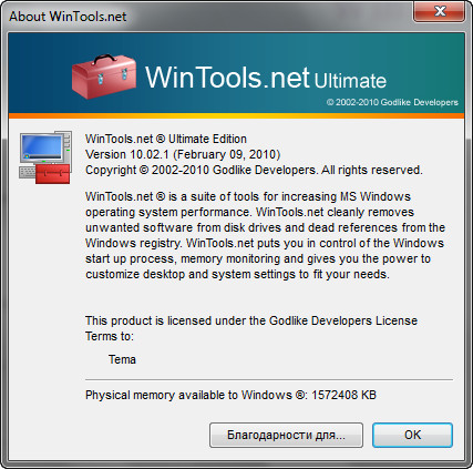 Скачать программу WinTools.NET Ultimate 10.02.1 (1,65 МБ):