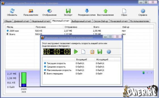 NetWorx - бесплатная утилита для учета интернет-трафика и мониторинга скорости Интернета на вашем компьютере. Программа работает с любым кабельным или беспроводным подключением, а также модемом, предоставляя удобную статистику, отчеты и графики. Вы сможете измерить реальную скорость и загрузку вашего интернет-подключения, просматривать ежедневные, недельные и месячные отчеты и получать уведомления о перерасходе трафика. Интересным применением NetWorx можно назвать и контроль за сетевой активностью ПК. Если объём трафика вдруг возрос - скорее всего, в системе поселился вирус или троян.