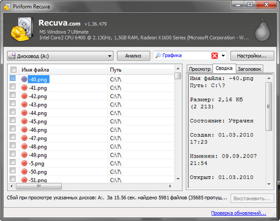Recuva - небольшая бесплатная утилита, которая предназначена для восстановления файлов, удаленных с ПК случайно или потерянных в результате программного сбоя или ошибки в работе приложений. Проста в использовании, не требует специальных знаний для успешного использования.