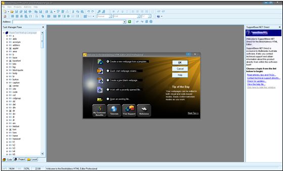 BestAddress HTML Editor – полнофункциональный HTML-редактор от компании Multimedia Australia, позволяющий без особого труда создать собственный сайт в сети Интернет. Программа умеет создавать меню на основе DHTML-кода, проверять синтаксис, подчеркивать ошибки, обладает поддержкой интеллектуального ввода кода, обладает богатым набором встроенных шаблонов и может быть использована для обновления ранее созданного ресурса.
