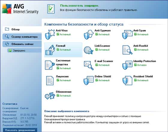 Компоненты AVG Internet Security: