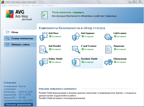Скачать программу AVG Anti-Virus plus Firewall 9.0.785 Build 2708 (100,53 МБ):