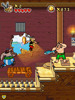 Времена фараонов давно прошли, но могущественная Клеопатра не унывает. Она докажет Юлию Цезарю, что ее народ еще способен на великие подвиги, воздвигнув для римского императора золотой дворец всего за три месяца. Но все лучшие архитекторы в данный момент заняты, поэтому этим займется несчастный Нумеробис. Сроки поджимают, так что ему не обойтись без Волшебного Напитка мудрых друидов, дарующего великую силу. И, конечно же, ему помогут два отважных и неунывающих галла — Астерикс и Обеликс. Они охотно выручают незадачливого архитектора, спасут часть величественной Клеопатры и ловко проучат хитрого Цезаря, который очень не хочет остаться в дураках. Размеры экранов: 128x128, 128x160, 176x220, 208x208, 240x320.