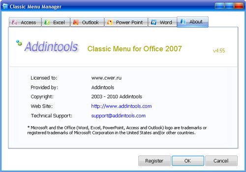 Скачать программу Classic Menu for Office 2007 v4.55 (2,5 МБ):
