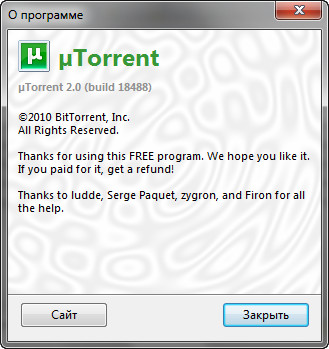Скачать программу µTorrent 2.0 Build 18488 Stable (0,8 МБ):