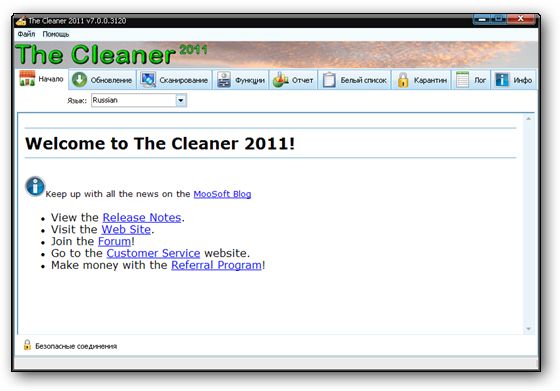 The Cleaner - программа, необходимая для поиска и удаления на вашем компьютере вирусов, троянов, программ-шпионов и различных вредоносных рекламных программ. Включив опцию мониторинга файлов и процессов программа будет всегда следить за всеми программами и процессами на вашем компьютере и при опасных изменениях будет вас информировать, либо сразу удалить их, если файлы будут в опасности. Также имеется зона карантина, проверка компьютера по расписанию, обновление сигнатур через интернет.