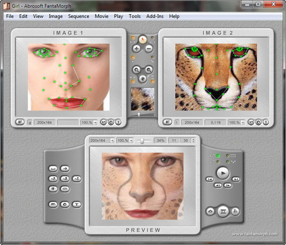 FantaMorph - программа для создания анимированных изображений с эффектом морфинга и различных деформаций изображений. С помощью этой программы вы сможете создавать удивительные анимированные изображения, с плавным переходом от одной фотографии к другой с применением различных эффектов и деформаций. Программа имеет большое количество предустановок эффекта, поддерживает импорт видео, а также имеет широкие возможности по настройке и улучшению качества изображений. Вы сможете обрезать, поворачивать, регулировать цвет, добавлять различные надписи и потрясающие эффекты с помощью встроенных инструментов для редактирования без необходимости в обращении за помощью к сторонним приложениям. Программой поддерживается большое количество графических форматов, включая BMP, JPEG, TIFF, PNG, GIF, TGA, PCX и другие. Результат вы сможете экспортировать в AVI формат, анимированный GIF, флэш, формат экранной заставки, автономный EXE файл и в другие форматы.
