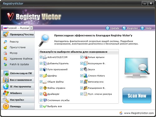 Registry Victor – программа для улучшения работы компьютера, которая находит ошибки, оптимизирует систему и ускоряет ее. Вы можете столкнуться с различными проблемами, которые постепенно появляются с использованием компьютера, например, замедление, зависание, «голубой экран смерти», постоянные сообщения об ошибках и т.д. Registry Victor использует только самые продвинутые технологии для сканирования вашей системы и дает вам наиболее полную диагностику всего за несколько секунд.
