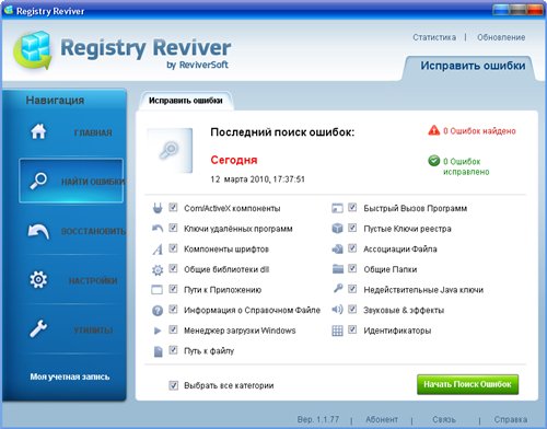 Registry Reviver использует самые передовые технологии доступные для анализа ошибок ПК и ускоряет работу компьютера. Программа обнаруживает и удаляет все неиспользуемые записи в реестре компьютера после сбоя программного обеспечения, установки драйверов, установок с ошибками / деинсталяций и оптимизирует работу Windows.