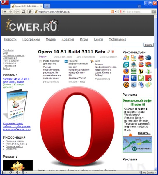 Скачать программу Opera 10.51 Build 3311 Beta (11,85 МБ):