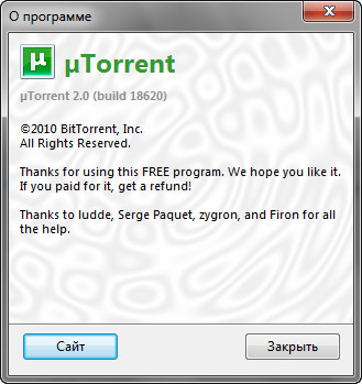 Скачать программу µTorrent 2.0 Build 18620 Stable (0,8 МБ):