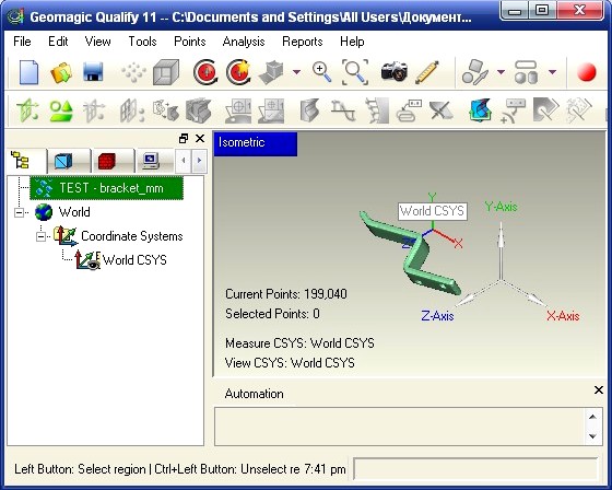 В программном пакете Geomagic Qualify реализована возможность автоматизации процессов с помощью шаблонов, макрокоманд, а также написания собственных программных модулей на языках Visual Basic, C, C++ или Java. Это позволяет проводить автоматизированный контроль партий деталей с возможностью последующего статистического анализа полученной информации (SPC). Имеется специальный модуль, позволяющий осуществлять автоматический контроль геометрии турбинных лопаток с вычислением размеров в характерных сечениях и последующим созданием отчета.