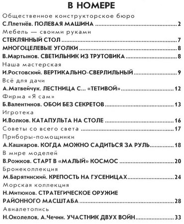Ежемесячный популярный научно-технический журнал. Издаётся с августа 1962 года. В каждом номере журнала публикуются чертежи и схемы самых разнообразных конструкций — от приспособлений для домашнего хозяйства до самодельных микроавтомобилей и любительских самолётов.