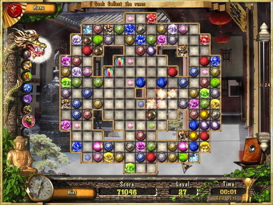 Новая игра от Alawar, более продвинутый клон Lines с симпатичной графикой и приятным музыкальным оформлением. Вызов, древний как сам Восток - брошен. Примите ли вы его или бежите в страхе, решение за вами. На первый взгляд задача очень проста: очистить игровое поле, составляя комбинации из трёх и более разноцветных рун. Но по мере продвижения, головоломки становятся всё сложнее, а препятствия почти непреодолимы. Но не волнуйтесь, мудрый дракон готов предложить вам помощь на пути к просветлению.