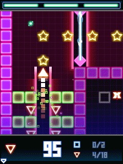 Новый ретро-хит прибывает на ваши мобильные! Цель игры заключается в том, чтобы направить ваш маленький неоновый треугольник вокруг ряда лабиринтов, собирая необходимое число предметов, чтобы разблокировать уровни выхода. Но это совсем не так просто, как кажется поначалу. Переключение между Красным и Синим миром игры открывает совершенно новое измерение игрового опыта. Синий режим является спокойным и расслабленным, но при переходе на Красный режим, мир меняется, а скорость резко возрастает. В каждом режиме можно собирать различные предметы, они приведут вас к 30 уровням, которые вам предстоит играть снова и снова. С потрясающей графикой и эффектами, а также с превосходным саундтреком, Neon Runner - это игра будущего. Размеры экранов: 176x208, 176x220, 208x208, 240x320.