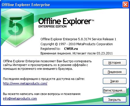 Скачать программу Offline Explorer Enterprise 5.8.3174 SR1 (8,99 МБ):