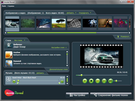muvee Reveal - позволяет быстро и легко создавать фильмы и слайд-шоу из фотографий и видео. Нужен тем, кто не привык заморачиваться тонкостями видеомонтажа. Просто добавьте видео, изображения, любимую музыку и выберите предварительно созданный стиль, все остальное программа сделает сама.