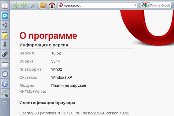 - включая установленную на компьютере версию Opera