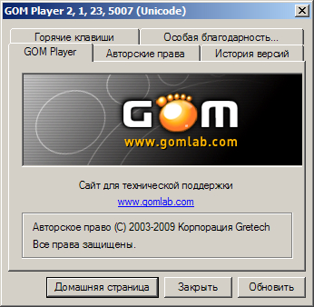 GOM Player - бесплатный мультимедиа плеер для Windows. Отличительной особенностью данного плеера является способность проигрывать большинство медиа-файлов без необходимости в сторонних кодеках, благодаря встроенной поддержке большинства популярных кодеков. Кроме того имеется уникальная возможность проигрывания повреждённых или недозагруженных файлов. Плеер понимает все распространенные форматы музыки и видео благодаря встроенным кодекам, устанавливаемым в комплекте с самой программой. Если же кодек для воспроизведения не найден, то программа предложит воспользоваться сторонним, установленным в системе, либо скачать соответствующий в интернете. Отличительной особенностью так же является наличие функции перемотки по кадрам, значительно увеличивающей скорость перемотки.