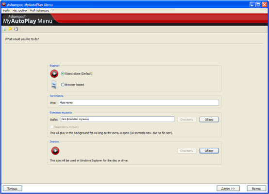 Скачать программу Ashampoo MyAutoplay Menu v1.0.0.64 Beta (15,52 МБ):