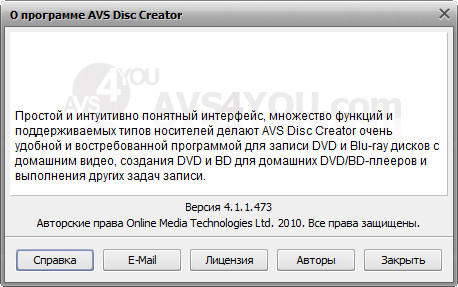 Скачать программу AVS Disc Creator 4.1.1.473 (44,66 МБ):