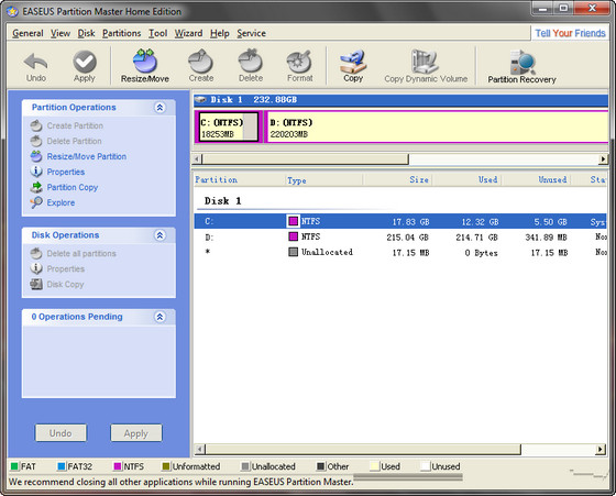 EASEUS Partition Master — удобная программа для разбиения жёсткого диска на разделы, которая не только упростит рутинные задачи, но и поможет вам редактировать разделы диска и управлять ими. А именно — быстро и с лёгкостью создавать, удалять и форматировать разделы, изменяя их размер и расположение без потери данных, с использованием свободного места на диске. С помощью этой программы, вы можете создавать, удалять, форматировать разделы на вашем жестком диске быстро и просто. К наиболее привлекательной функции относится способность изменения размера/перемещение ваших разделов, используя свободное место, без удаления данных.