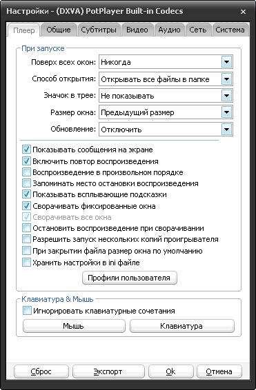Daum PotPlayer - корейский мультимедийный плеер, аналогичный популярному The KMPlayer (и прекрасная ему замена). В плеер добавлены дополнительные кодеки с поддержкой dxva и созданы профили для быстрого переключения между ними.