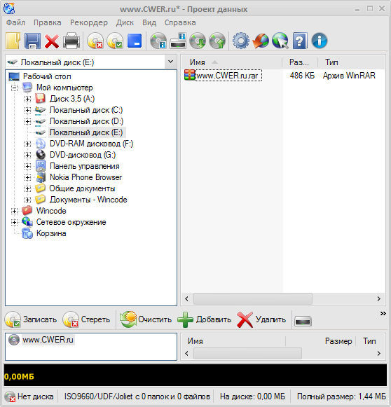 Создание CD/DVD с данными: