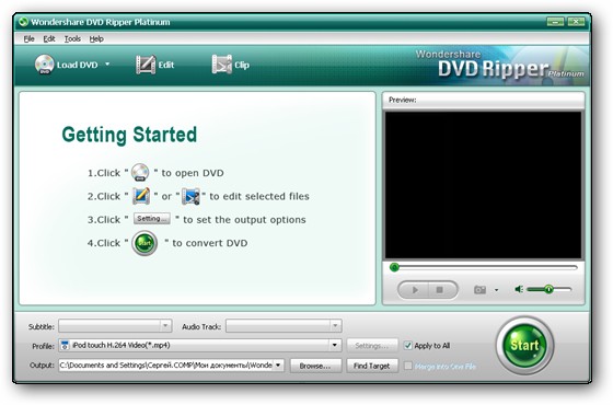 Wondershare DVD Ripper Platinum - удобный в работе и мощный DVD риппер, который может преобразовать DVD во все популярные видео и звуковые форматы, такие как MP4, M4V, AVI, WMV, MOV, 3GP, 3G2, MPEG, FLV, WMA, M4A, MP3, AC3, WMA, ASF, Vob, и т.д. с превосходным качеством и быстрой скоростью. Поддерживает почти все портативные видео/аудиоплейеры, что позволяет Вам легко редактировать DVD к iPod, Zune, iPhone, apple, PSP, Xbox 360, PS3, Archos, iRiver PMP , PMP, MP4/MP3, мобильным телефонам, Карманным PC, PDA, и т.д. Вы можете настроить размер файла, формат файла, и даже объединить несколько видео в 1 файл. С Wondershare DVD Ripper, Вы можете захватить любые картинки от вашего видео DVD и сохранить их как jpeg и bmp файлы.