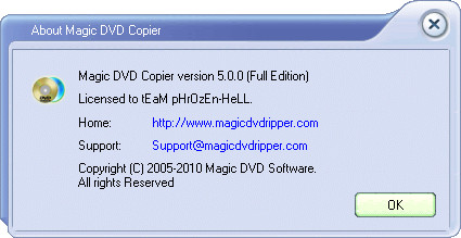 Magic DVD Copier - позволяет копировать один к одному любые DVD диски. Программа успешно обходит региональную защиту DVD, а также все известные способы защиты от копирования: CSS, Region, RCE, Macrovision, Sony ARccOS. Программа обладает высокой скоростью работы, поддерживает большинство DVD приводов.