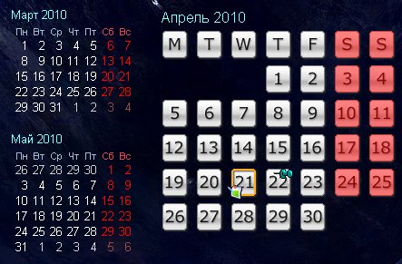 Active Desktop Calendar - красивый и функциональный интерактивный календарь, который показывает на рабочем столе, поверх обоев активный календарь, Ваши заметки и задания, которые Вы запланировали на тот или иной день. Также есть напоминания для Ваших событий и заставка (хранитель экрана). Календарь может быть показан в традиционным виде или в виде значков. Предусмотрена возможность создания слоев для разных событий и подключение нескольких компьютеров к общему файлу (например, для работы в локальной сети).