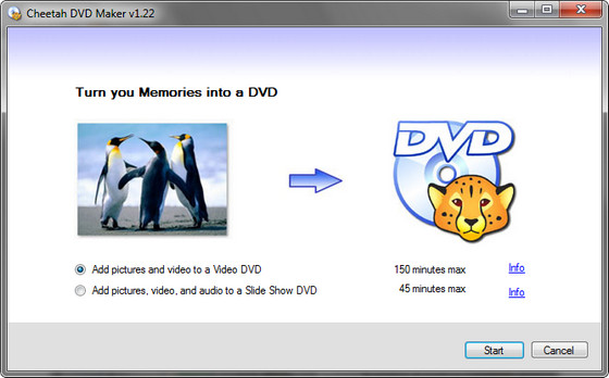 С помощью Cheetah DVD Maker - можно сделать DVD слайд с фотографиями, видео и аудио. Это быстрая и простая в использовании программа для создания домашних DVD.