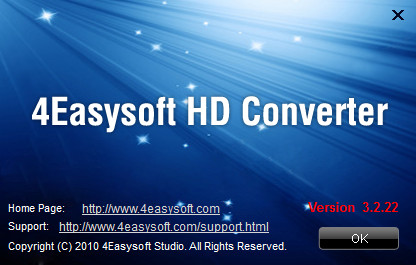 4Eeasysoft HD Converter является простым, легким HD-видео конвертером для преобразования HHD DV, HD TS, MTS, M2TS, HD MOV, HD H.264, HD RM и другие HD видео форматы. 4Eeasysoft HD Converter также помогает вам конвертировать HD-видео в такие форматы, как AVI, WMV, 3GP, MP4, FLV, SWF, ASF и т.д.