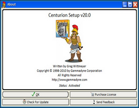 - Self-Contained Executable : Centurion Setup creates executable installation programs that are self-contained in a single file. A single file is easily downloaded, requires no software such as WinZip to decompress, and ensures that all installation files are present. The installer's overhead is only 440 KB and the compression engine achieves a very high compression ratio. You will be amazed at how small Centurion Setup can make the installer.