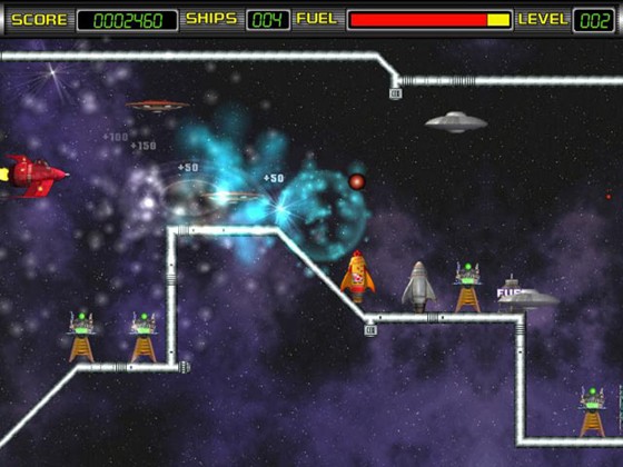Это космическая стрелялка нового тысячелетия в стиле ретро! Уворачивайтесь от вражеских ракет или сбивайте их, прокладывая курс сквозь орды вражеских тарелок, огненные бури и узкие туннели для механизмов. И не забудьте о заправке, или вы далеко не улетите. Время садиться за штурвал и взлетать!