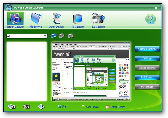Power Screen Capture - мощная утилита для захвата всего, что происходит на экране монитора с высоким качеством, а так же захвата изображений с различных устройств типа DV видео и веб-камер, TV тюнеров и прочих девайсов, в режиме реального времени. Возможна установка выходных параметром захваченного материла: видео и аудио кодеков, размер рамки и кадров в секунду и пр. Присутствует так же возможность нанесения водяных знаков и текстовых надписей.