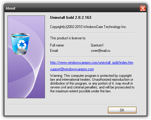 Скачать программу WindowsCare Uninstall Gold 2.0.2.163 + Rus (2,02 МБ):