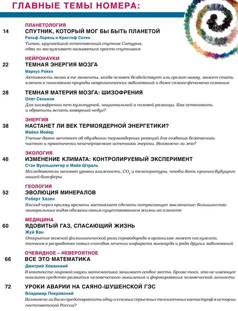 Российское издание Scientific American, которое адресовано как научной и технической интеллигенции, так и широкому кругу образованных читателей, стремящихся быть в курсе последних достижений мировой научной мысли. На его страницах активно обсуждаются наиболее актуальные проблемы современной науки, вопросы ее места и роли в современном мире, ответственности ученых за судьбы человечества, взаимодействия науки с обществом и государством.