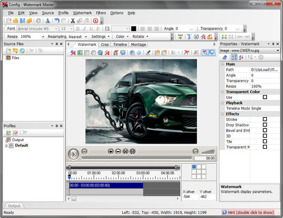 Watermark Master - предназначена для добавления водяных знаков на графику и видео. В качестве водяного знака программа позволяет использовать текстовую надпись, изображение, анимированный файл GIF, видеоклип, различные векторные фигуры. Программа может добавлять водяные знаки не только на графические файлы, но и на видео, при этом, по желанию пользователя, знак можно добавить только на некоторые кадры. К водяным знакам можно применять разные эффекты, например клонирование, отбрасывание тени, добавление объема, кривизну. Программа позволяет при необходимости работать в режиме пошагового мастера, что намного упрощает процесс накладывания водяного знака на объекты. Простой интерфейс и наличие мастера делают программу удобной в эксплуатации даже для людей, не обладающих специальными знаниями.