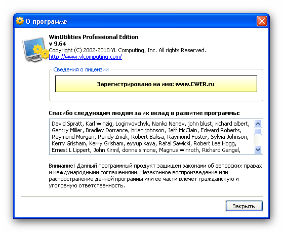 Скачать программу WinUtilities Pro 9.64 Rus (8,57 МБ):