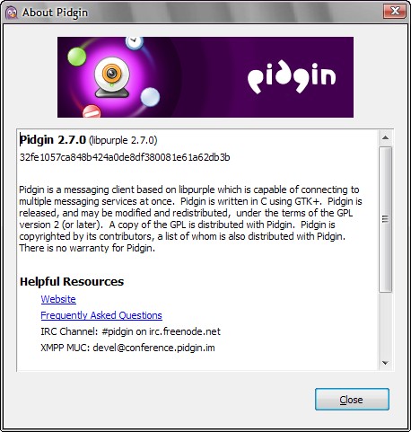 Pidgin - графический модульный клиент обмена сообщениями, основывающийся на библиотеке libpurple, позволяющей использовать AIM, MSN, Yahoo!, XMPP, ICQ, IRC, SILC, SIP/SIMPLE, Novell GroupWise, Lotus Sametime, Bonjour, Zephyr, MySpaceIM, Gadu-Gadu и QQ одновременно. Написан с использованием GTK+.