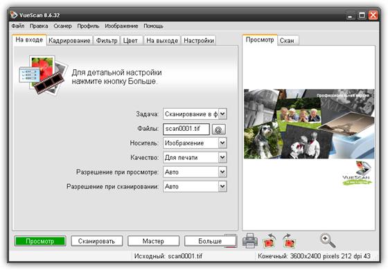 VueScan Pro - программа для работы со сканерами HP, Minolta, Nikon, Polaroid, Epson, Canon и другими. Может работать с внутренней глубиной цвета. VueScan поддерживает автоматическую и ручную настройку большинства параметров и пакетный режим сканирования. Поддерживается более 500 моделей сканеров с определенным перевесом в сторону слайд-сканеров — Nikon, Minolta, Polaroid, Microtek, Epson. Предусмотрено автоматическое удаление дефектов изображения за счет канала инфракрасного сканирования и многопроходное сканирование с последующим усреднением результата — для подавления собственных шумов сканера. Имеются фильтры подавления зерна, нерезкого маскирования и удаления паразитного оттенка оригинала. Есть средства ручной корректировки динамического диапазона и градационной характеристики (независимо по каналам R, G, B).